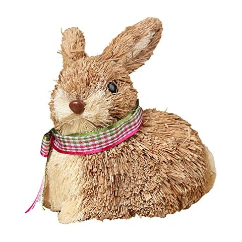 DEDEMCO Lapin de Pâques en paille tressée 15 cm